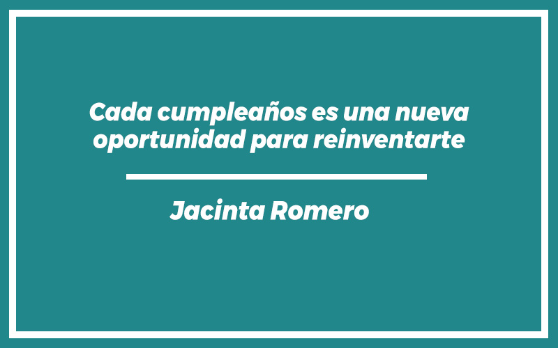 “Cada cumpleaños es una nueva oportunidad para reinventarte.”Jacinta Romero