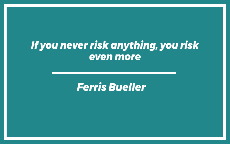 “If you never risk anything, you risk even more.” – Ferris Bueller