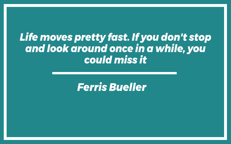 “Life moves pretty fast. If you don’t stop and look around once in a while, you could miss it.” – Ferris Bueller