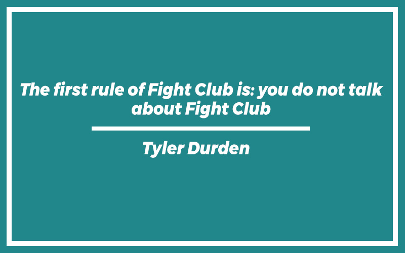 “The first rule of Fight Club is: you do not talk about Fight Club.” – Tyler Durden