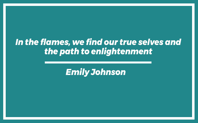 “In the flames, we find our true selves and the path to enlightenment.” – Emily Johnson