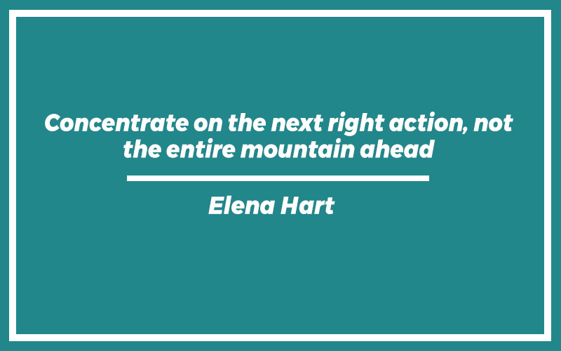 “Concentrate on the next right action, not the entire mountain ahead.” – Elena Hart
