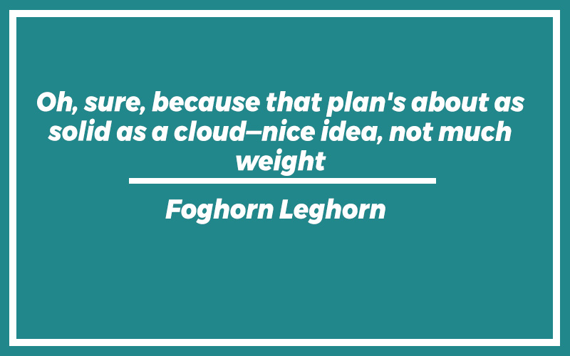 “Oh, sure, because that plan’s about as solid as a cloud—nice idea, not much weight.” – Foghorn Leghorn