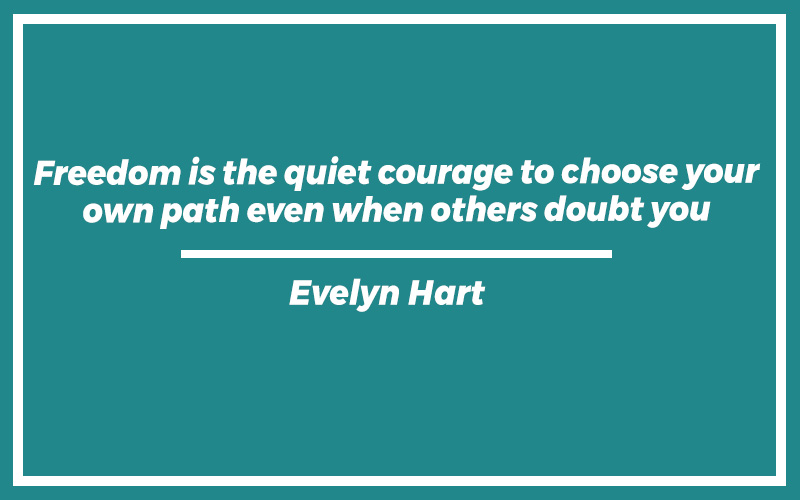 “Freedom is the quiet courage to choose your own path even when others doubt you.”Evelyn Hart