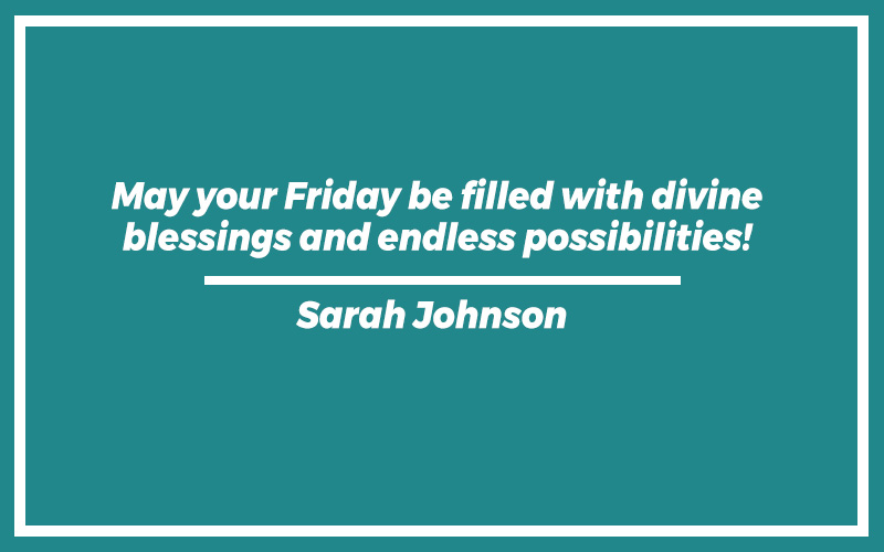 “May your Friday be filled with divine blessings and endless possibilities!”Sarah Johnson