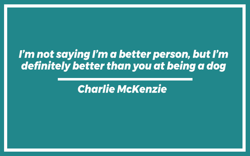 “I’m not saying I’m a better person, but I’m definitely better than you at being a dog.” – Charlie McKenzie