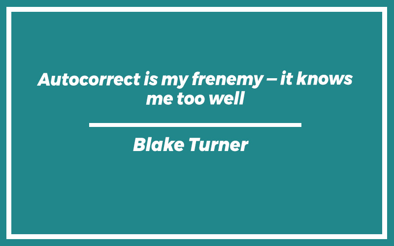 “Autocorrect is my frenemy — it knows me too well.” – Blake Turner