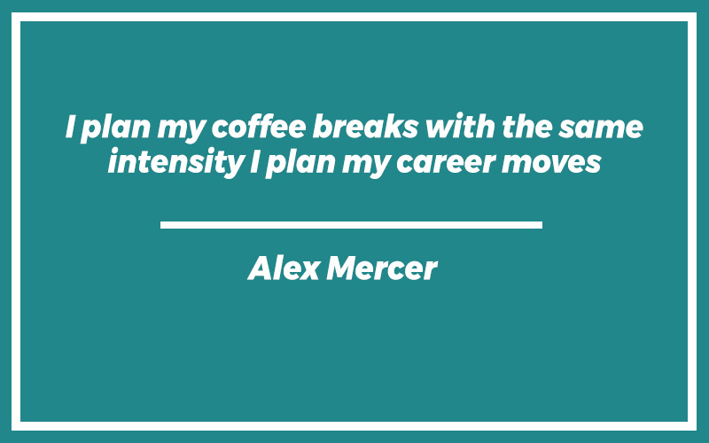 “I plan my coffee breaks with the same intensity I plan my career moves.” – Alex Mercer