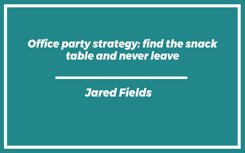 “Office party strategy: find the snack table and never leave.” – Jared Fields