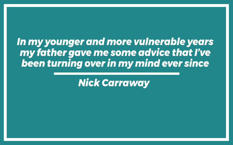 “In my younger and more vulnerable years my father gave me some advice that I’ve been turning over in my mind ever since.” – Nick Carraway