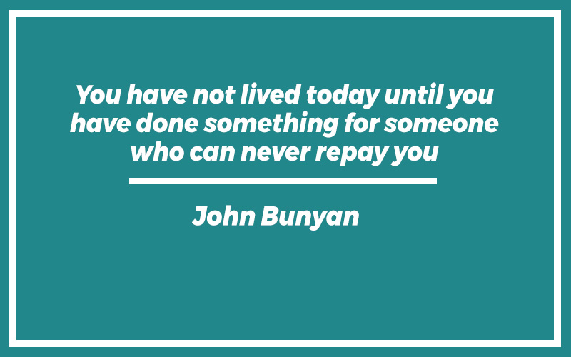 “You have not lived today until you have done something for someone who can never repay you.” – John Bunyan