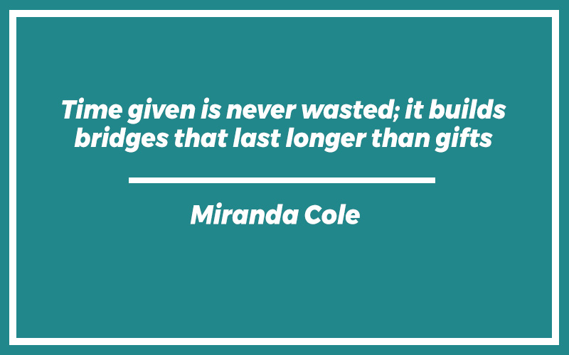 “Time given is never wasted; it builds bridges that last longer than gifts.” – Miranda Cole