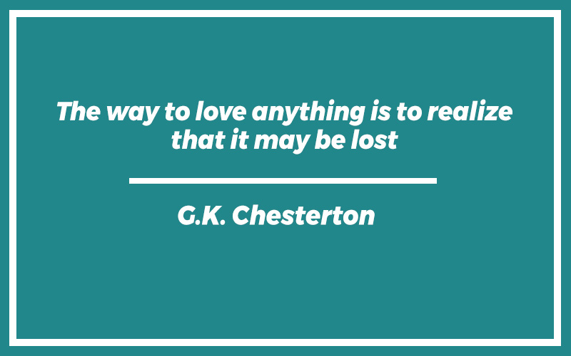 “The way to love anything is to realize that it may be lost.”G.K. Chesterton