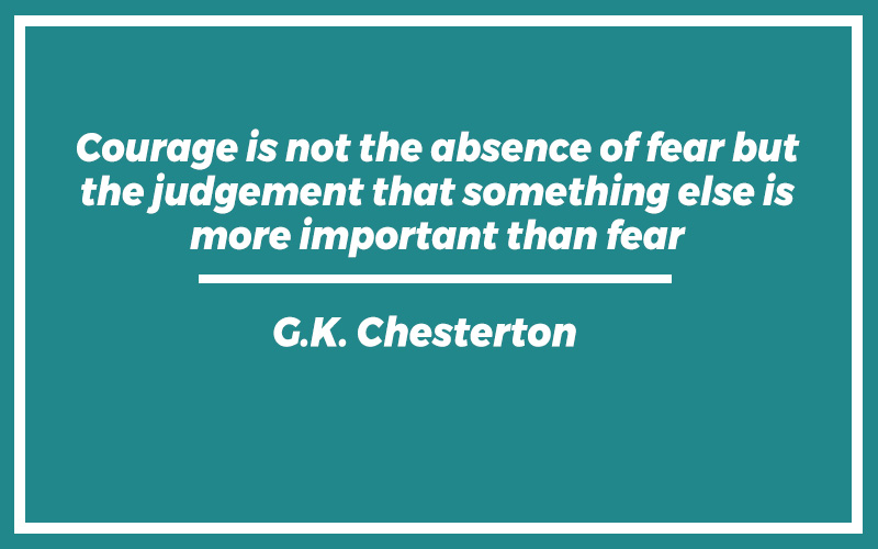“Courage is not the absence of fear but the judgement that something else is more important than fear.”G.K. Chesterton