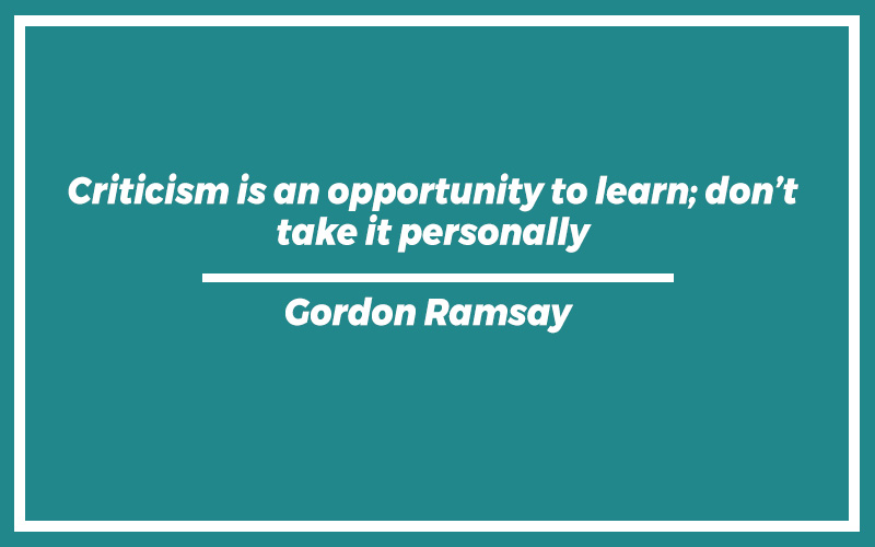 “Criticism is an opportunity to learn; don’t take it personally.” – Gordon Ramsay