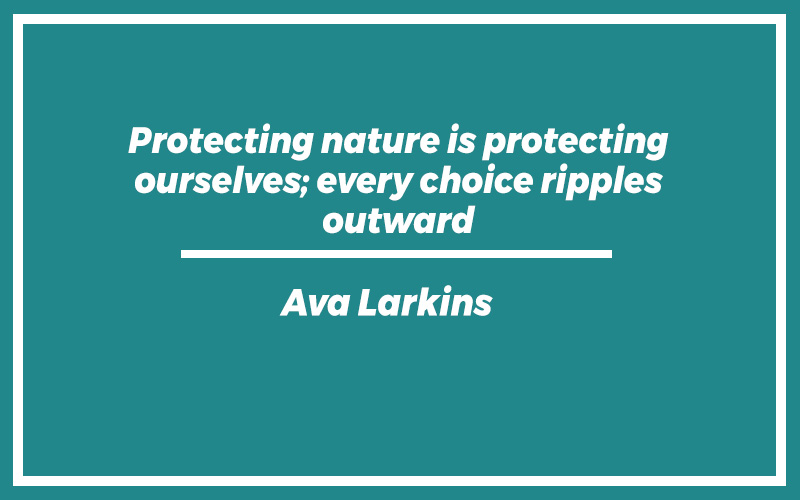 “Protecting nature is protecting ourselves; every choice ripples outward.” – Ava Larkins