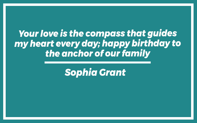 “Your love is the compass that guides my heart every day; happy birthday to the anchor of our family.” – Sophia Grant