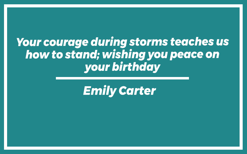 “Your courage during storms teaches us how to stand; wishing you peace on your birthday.” – Emily Carter