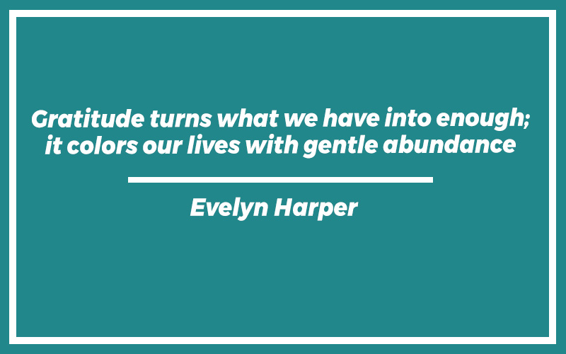 “Gratitude turns what we have into enough; it colors our lives with gentle abundance.”Evelyn Harper