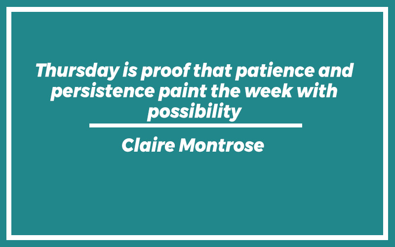 “Thursday is proof that patience and persistence paint the week with possibility.” – Claire Montrose