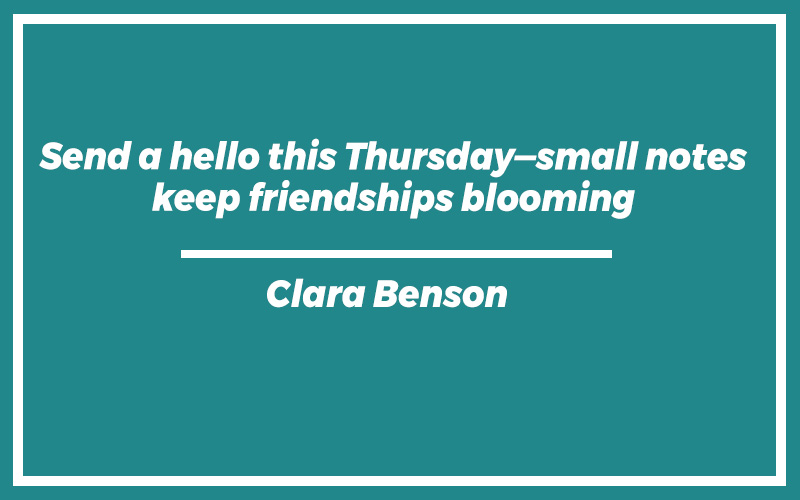 “Send a hello this Thursday—small notes keep friendships blooming.” – Clara Benson