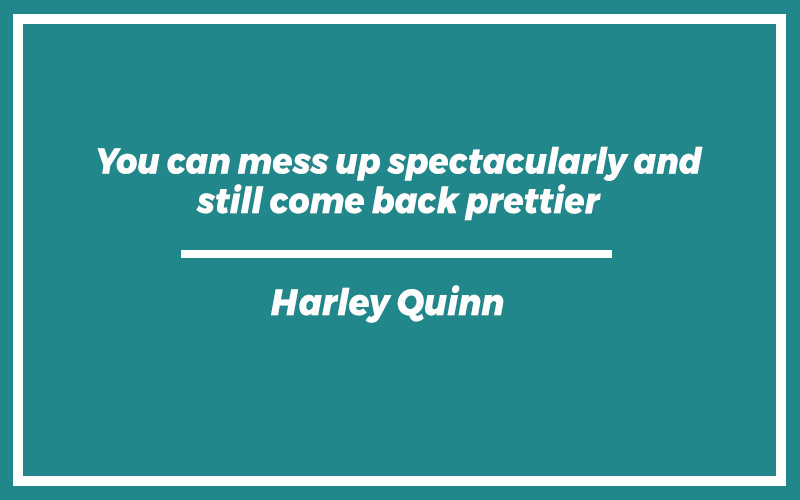 “You can mess up spectacularly and still come back prettier.” – Harley Quinn