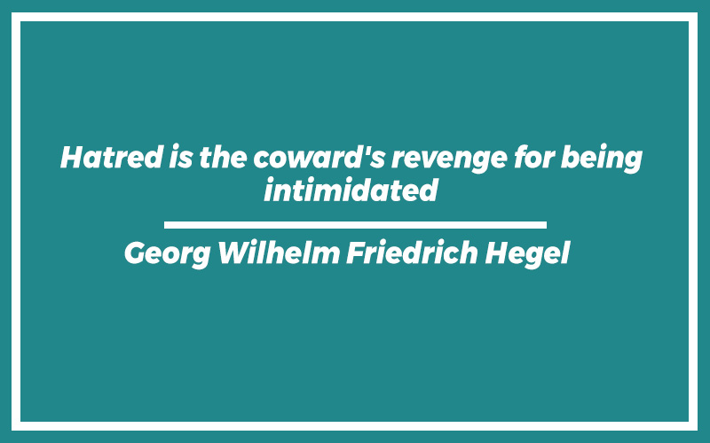 “Hatred is the coward’s revenge for being intimidated.”Georg Wilhelm Friedrich Hegel