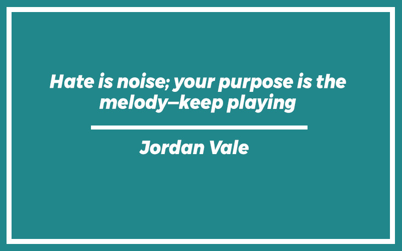 “Hate is noise; your purpose is the melody—keep playing.” – Jordan Vale