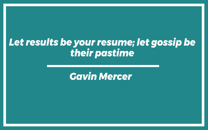 “Let results be your resume; let gossip be their pastime.” – Gavin Mercer