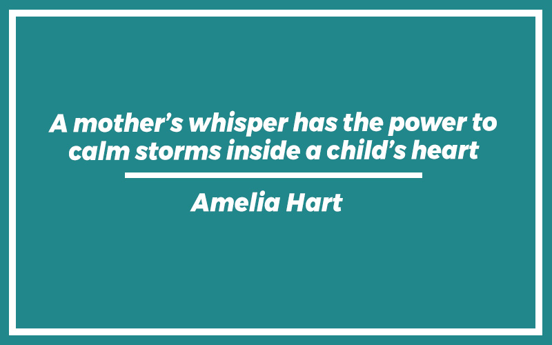 “A mother’s whisper has the power to calm storms inside a child’s heart.” – Amelia Hart