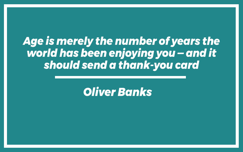 “Age is merely the number of years the world has been enjoying you — and it should send a thank-you card.”Oliver Banks