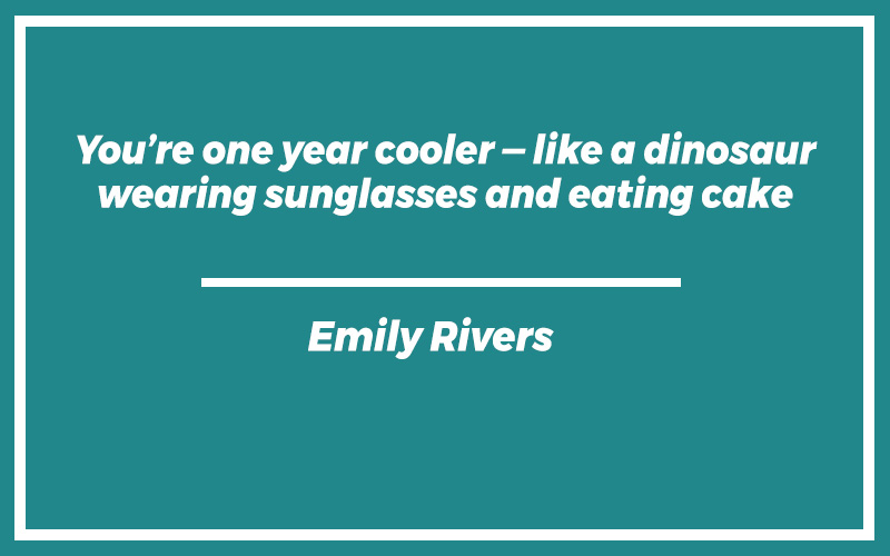 “You’re one year cooler — like a dinosaur wearing sunglasses and eating cake.”Emily Rivers