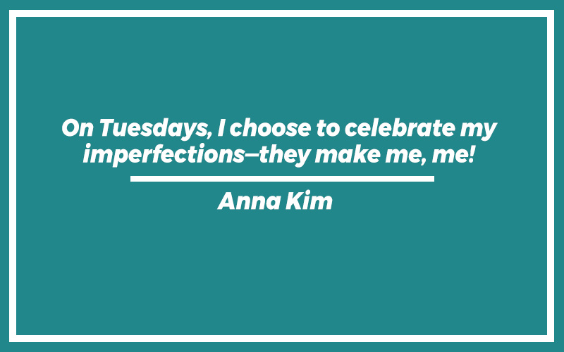 “On Tuesdays, I choose to celebrate my imperfections—they make me, me!” – Anna Kim