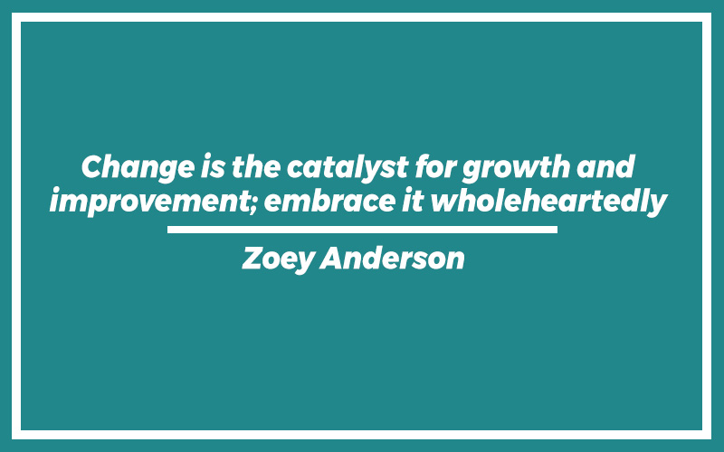 “Change is the catalyst for growth and improvement; embrace it wholeheartedly.” – Zoey Anderson