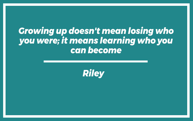 “Growing up doesn’t mean losing who you were; it means learning who you can become.”Riley