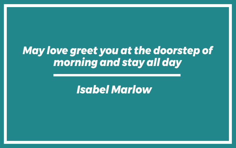 “May love greet you at the doorstep of morning and stay all day.” – Isabel Marlow