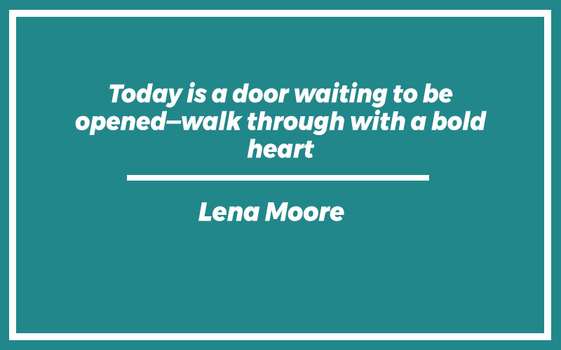 “Today is a door waiting to be opened—walk through with a bold heart.” – Lena Moore