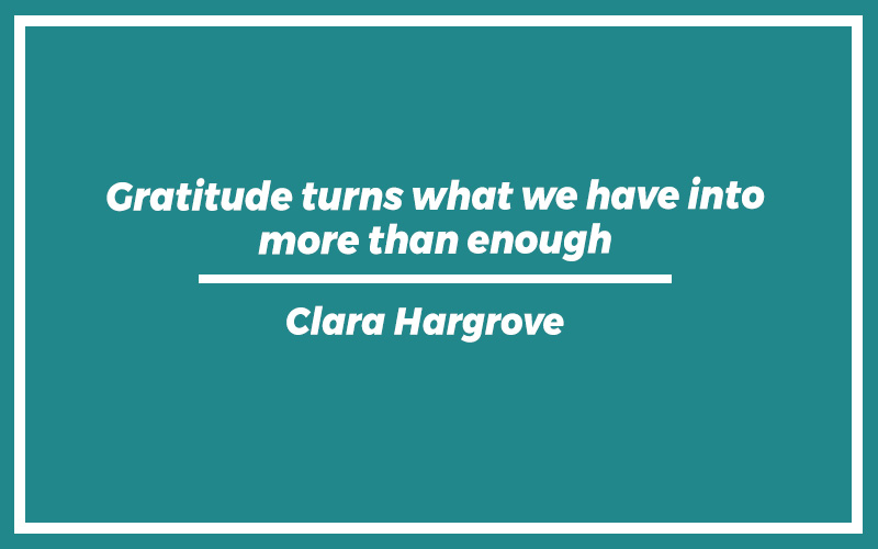 “Gratitude turns what we have into more than enough.” – Clara Hargrove