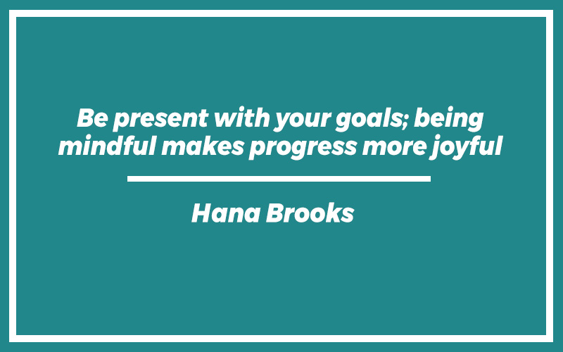 “Be present with your goals; being mindful makes progress more joyful.” – Hana Brooks