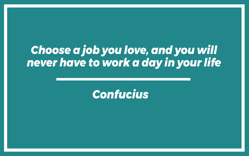 “Choose a job you love, and you will never have to work a day in your life.” – Confucius