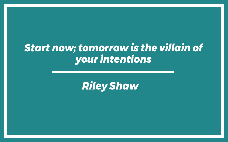 “Start now; tomorrow is the villain of your intentions.” – Riley Shaw