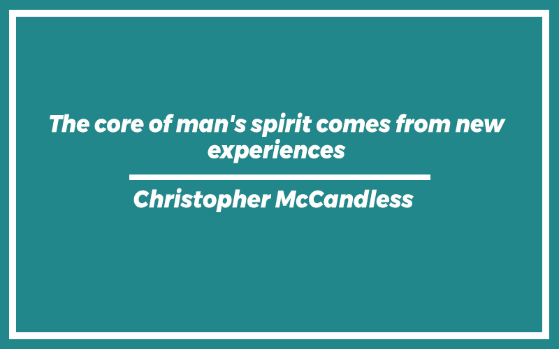 “The core of man’s spirit comes from new experiences.”Christopher McCandless
