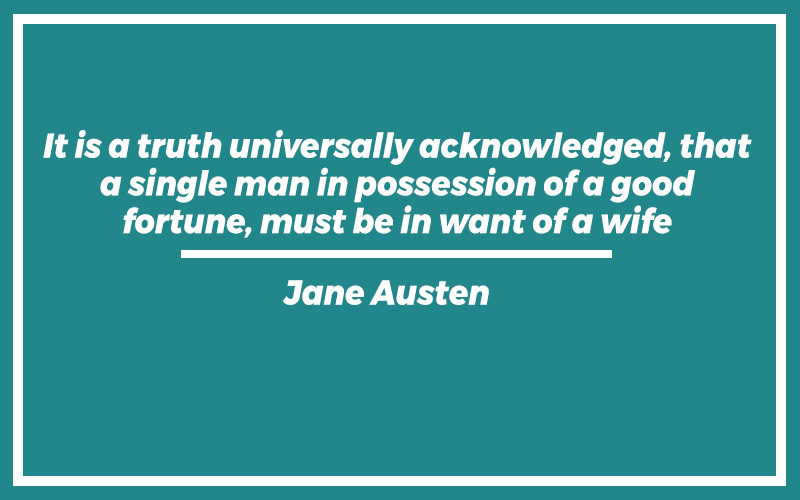 “It is a truth universally acknowledged, that a single man in possession of a good fortune, must be in want of a wife.” – Jane Austen