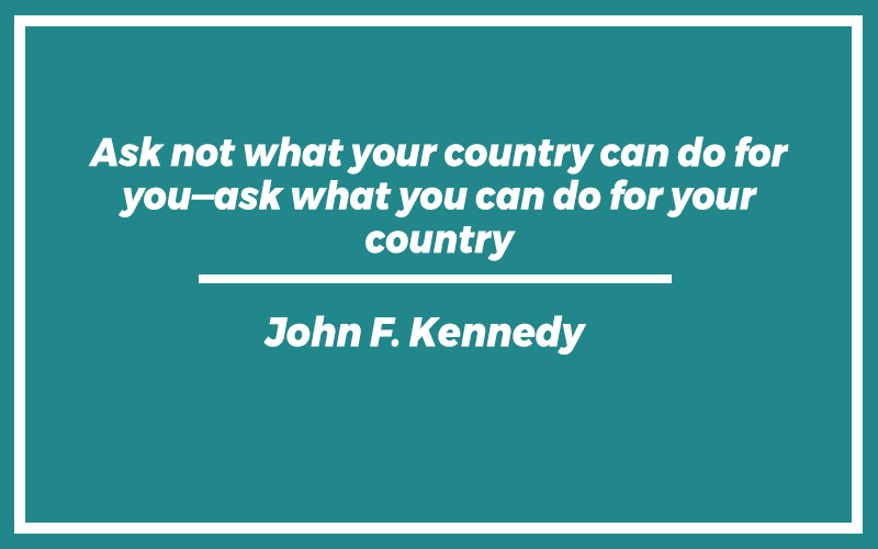 “Ask not what your country can do for you—ask what you can do for your country.”John F. Kennedy