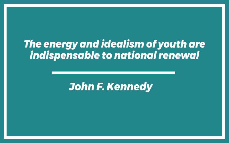 “The energy and idealism of youth are indispensable to national renewal.”John F. Kennedy