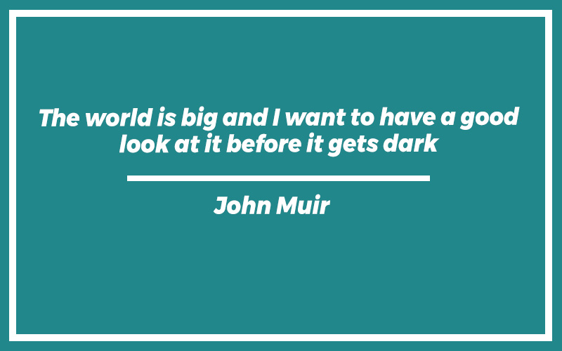“The world is big and I want to have a good look at it before it gets dark.” – John Muir