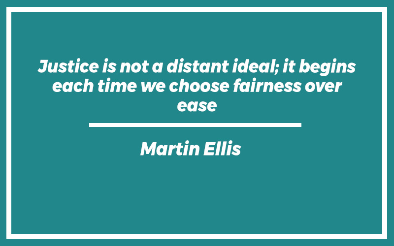 “Justice is not a distant ideal; it begins each time we choose fairness over ease.”Martin Ellis