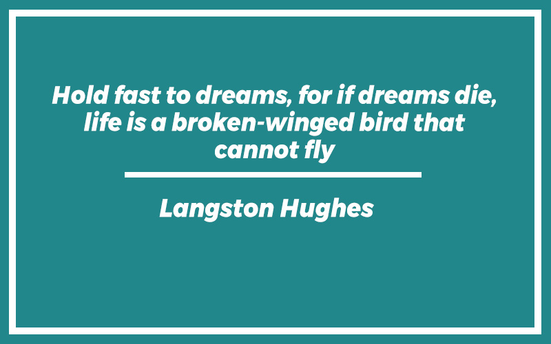 “Hold fast to dreams, for if dreams die, life is a broken-winged bird that cannot fly.” – Langston Hughes