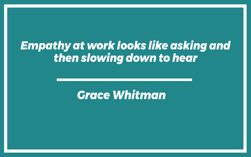 “Empathy at work looks like asking and then slowing down to hear.” – Grace Whitman