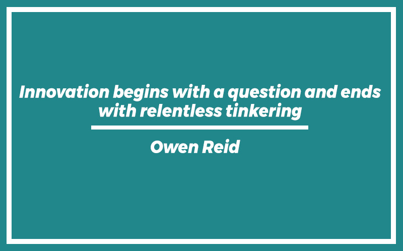 “Innovation begins with a question and ends with relentless tinkering.” – Owen Reid